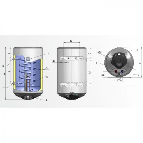 Eldom Thermo 100 л/1 мокр.ТЭН/2 кВт/1 змеевик прав.подкл.
